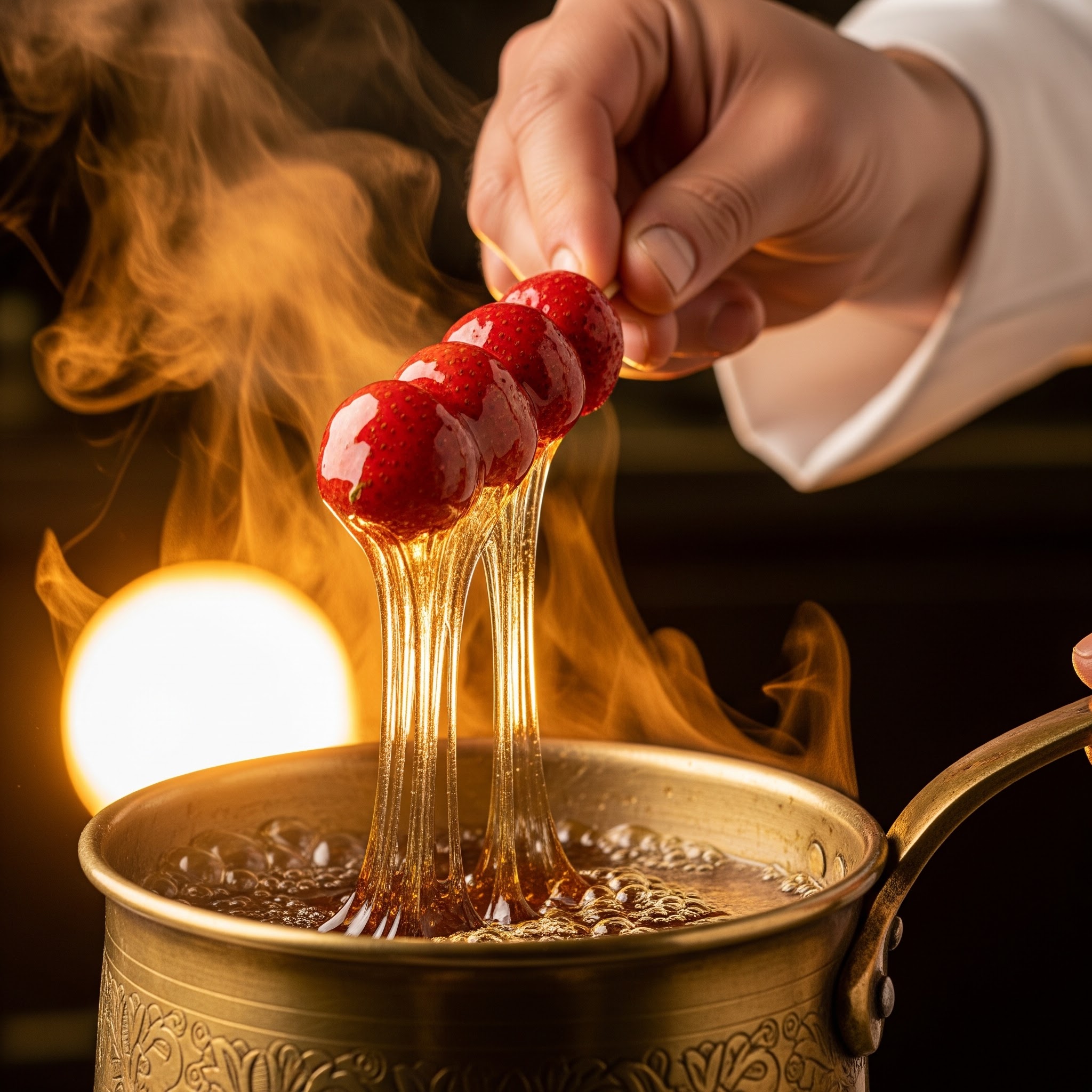 Hatalmas, lédús, válogatott szamócák hajszálvékony, csillogó cukormázban. A Tanghulu koronázatlan királya.